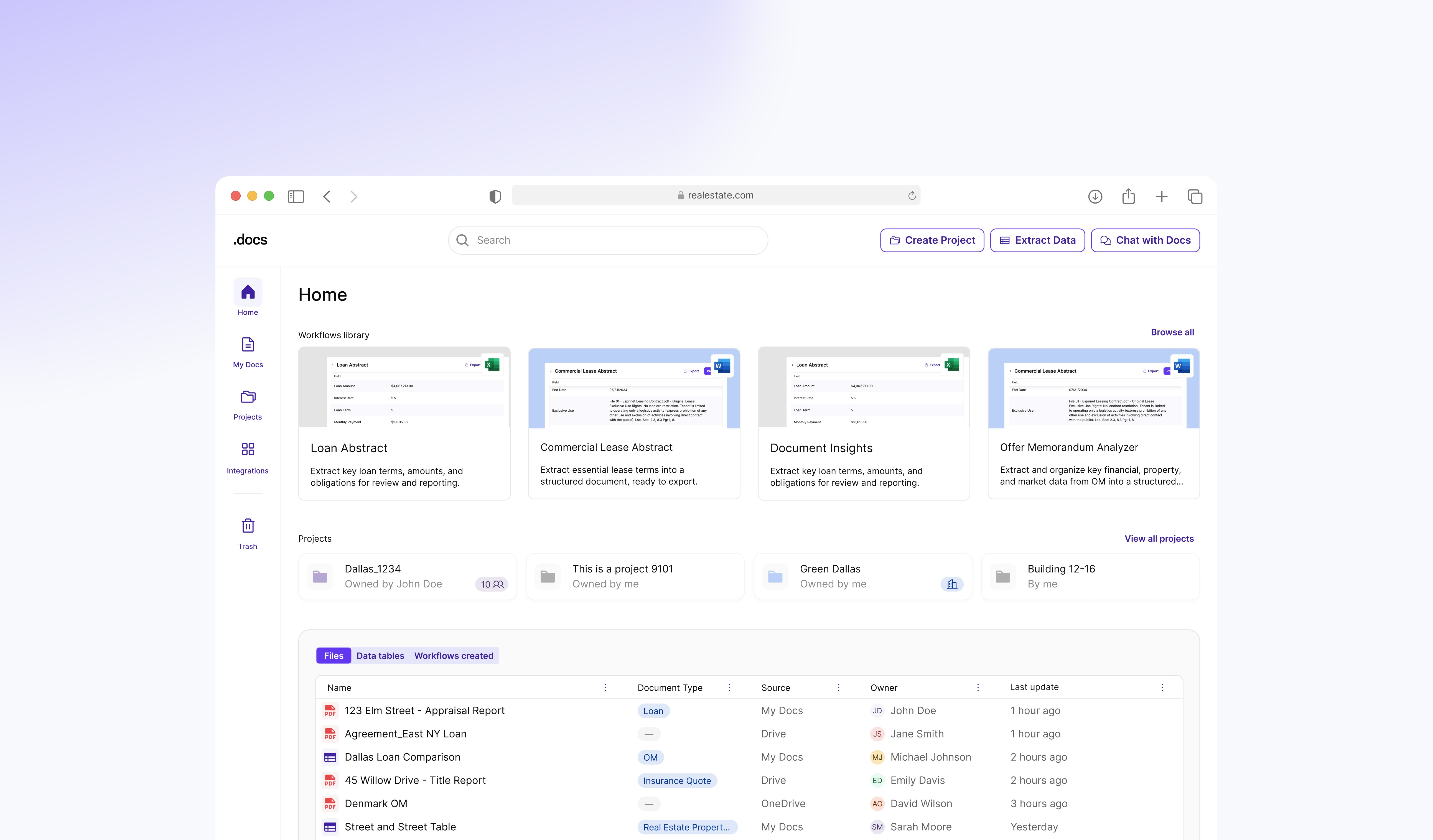We designed Docs as a modular system where each capability like extraction, workflows, projects, integrations, solves a specific part of the analytical process while contributing to a unified mental model.